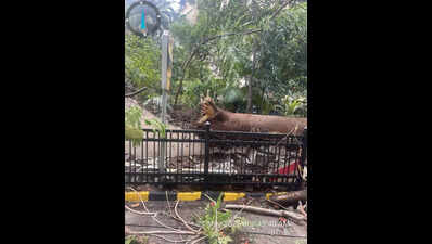 Mumbai: A 43-year-old man sustained injuries on the head, chest, and back after a tree got uprooted and fell on three to four vehicles parked near Kinjal Tower on N M Joshi Marg in Byculla (W) on Wednesday evening.Passersby rushed the victim, Shahnawaz Shaikh, to the civic-runNair Hospital, where he was admitted. Meanwhile, a day after a gulmohar tree crashed on the gates of Jalvayu Vihar Society-Sector C in Powai and grievously injured watchman Prashant Torane (54) and his wife Shobha (51), they are both out of danger. BMC officials on Wednesday confirmed that the gulmohar stood on private premises and trimming permission had been granted to the society in March. Shobha suffered serious injuries to her head and shoulder, while shards pierced Prashant’s arms after the tree fell on them on Tuesday, around 8.40pm. When TOI visited the Toranes’ residence in Powai on Wednesday, a heavily medicated Shobha lay unconscious. The Toranes’ son-in-law said: “She suffered a deep lacerated wound in the parietal area over her mid-scalp about 5-7 cm long, with bleeding and was rushed to Powai Polyclinic and Hospital, where she received 14 stitches.She’s on heavy medication and resting now, but we’ve been told to stay alert for symptoms like vomiting…”He added that Prashant is also suffering from severe swelling in his right leg.Meanwhile, the residents have been stranded on the premises since last night as the fallen tree has blocked the gates and damaged the boundary wall, said society chairman Ranjeet Singh.Mumbai: A 43-year-old man sustained injuries on the head, chest, and back after a tree got uprooted and fell on three to four vehicles parked near Kinjal Tower on N M Joshi Marg in Byculla (W) on Wednesday evening. Passersby rushed the victim, Shahnawaz Shaikh, to the civic-run Nair Hospital, where whe was admitted. Meanwhile, a day after a gulmohar tree crashed on the gates of Jalvayu Vihar Society-Sector C in Powai and grievously injured watchman Prashant Torane (54) and his wife Shobha (51), they are both out of danger. BMC officials on Wednesday confirmed that the gulmohar stood on private premises and trimming permission had been granted to the society in March. Shobha suffered serious injuries to her head and shoulder, while shards pierced Prashant’s arms after the tree fell on them on Tuesday, around 8.40pm. Residents rushed them to a nearby hospital. When TOI visited the Toranes’ residence in Powai on Wednesday, a heavily medicated Shobha lay unconscious. The Toranes’ son-in-law said: “She suffered a deep lacerated wound in the parietal area over her mid-scalp about 5-7 cm long, with bleeding and was rushed to Powai Polyclinic and Hospital, where she received 14 stitches.She’s on heavy medication and resting now, but we’ve been told to stay alert for symptoms like vomiting…”He added that Prashant, who had the shards surgically removed, is also suffering from severe swelling in his right leg. The Toranes thanked society chairman Ranjeet Singh who helped them reach the hospital and paid their medical bills.Meanwhile, the residents have been stranded on the premises since last night as the fallen tree has blocked the gates and damaged the boundary wall, said society chairman Ranjeet Singh.Society secretary Aviraj Singh, “We seem to be under lockdown. No one can leave the building, and no vehicles can enter.”