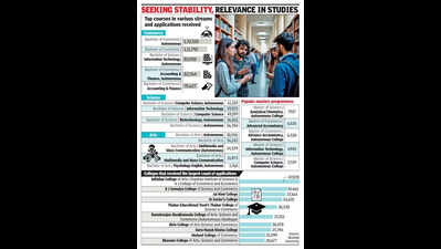 Mumbai: In a season of choices and cutoffs, the city’s 18-year-olds revealed where their hearts—and hopes—truly lie. Mithibai College emerged as the clear favourite, drawing the lion’s share of applications, its name pencilled in on about 50,000 admission forms. But it wasn’t just the college that commanded attention. The BCom degree, especially in autonomous institutions without its rigid boundaries, wore the crown this year— emblematic of a generation chasing both stability and relevance in a shifting academic landscape.K J Somaiya College of Arts and Commerce is second, followed closely by Jai Hind College. All three are not just institutions with multiple faculties, they are legacy institutes with flexibility now pushed in by the National Education Policy (NEP), where students no longer need to colour within the lines of a single stream.“The main reason for so many applications,” says Krutika Desai, principal of Mithibai College, “is that we are a multi-faculty institution.” But probe a little deeper, and what surfaces is not just breadth, but depth. It’s not the usual suspects that are pulling in the crowds anymore. “The conventional science course is less popular,” Desai admits. “But our new programmes like BSc in health science, BSc in applied statistics, and data science analysis are in demand. We offer psychology not just in BA but also in BSc. Courses such as BMM have closed at 92%. All seats across courses are full.”At Jai Hind College—one of the city’s multi-faculty hubs and the third most sought-after by applicants—the self-financed streams are tilting sharply towards BMS and BBA. These professional courses, still awaiting the start of admissions, have become the first choice for a generation chasing management dreams early. In the humanities wing, Psychology and Economics are leading the race, mirroring trends across campuses, confirmed principal Vijay Dabholkar.It’s not just about the college’s banner anymore. It’s about the course, the commute, the crowd, and the career it promises to build. Dr Rajendra Singh, trustee of R Jhunjhunwala College, reads the admission data like a mosaic —each fragment a reflection of shifting student aspirations. It’s not just about scholarships, he insists. “We ensure that teaching is regular, that education happens in the classroom.” The numbers are staggering. Mumbai University received 12.65 lakh applications for its undergraduate courses, and more than 1.16 lakh for postgraduate ones. But the real story lies in the undercurrents. While the applications are almost evenly split between boys and girls—boys inching ahead by a few decimal places—it’s the women who are quietly reshaping the postgraduate landscape, accounting for over 60% of all PG applications.What’s drawing them in isn’t just legacy programmes, but a wave of new-age courses that are recalibrating the old contours of higher education. Data science and artificial intelligence—strangers to these syllabi just four years ago—are now headliners, pulling in applications that dwarf those for some timeworn degrees. One such BSc (data science) course alone clocked over 25,000 applications.The tilt is just as visible in traditional colleges. At Ramnarain Ruia, among Mumbai’s pure arts and science institutions, psychology tops the charts, closely followed by political science and economics— subjects that, according to principal Anushree Lokur, students now see as springboards to market-ready careers. In science, too, the interest is veering toward the applied: Microbiology, biotechnology, computer science, and statistics—while the more ‘core’ disciplines are slowly being left in the rearview mirror. “There is a steady decline in interest in core science courses,” Lokur says.Even heritage institutions like St Xavier’s College are reading the signs. Long known for its excellence in the humanities and sciences, it has now opened its doors to commerce. “Given that Mumbai is the commercial capital of the country, we felt the need to also serve students aspiring for careers in commerce,” says Rector Father Keith D’Souza. A newly minted BCom in accounting and finance is already a draw, and the junior college now runs three full commerce divisions. Even the evening BCom programme, once designed to help migrant workers earn a degree, is being reclaimed—this time by mainstream students, choosing it not out of necessity, but preference.
